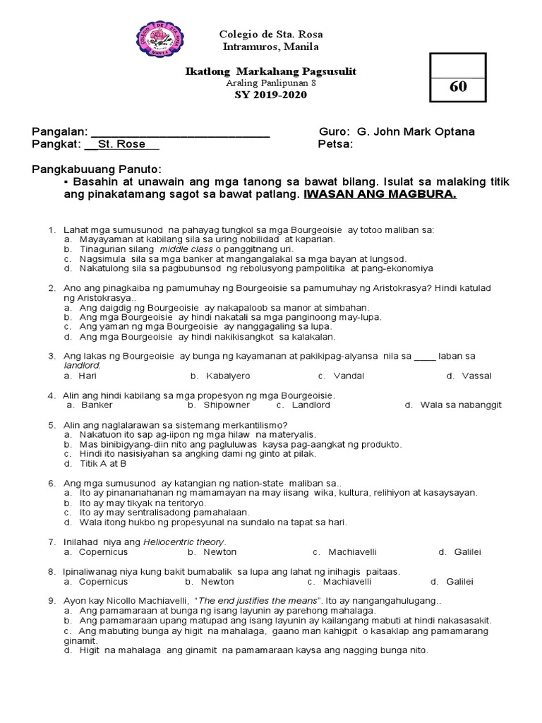 Mahalagang katangian ng nation-state sa panahong ito ang pagkakaroon ng sentralisadong pamahalaan sa ilalim ng isang pambansang monarkiya na may kakayahan at kapangyarihan na magpatupad ng batas sa buong nasasakupan. 1 Sino ang tinutukoy sa akda na lumuha 2 Ano ang mga. Ipaliwanag ang epekto o bunga ng Unang Digmaang Pandaigdig.