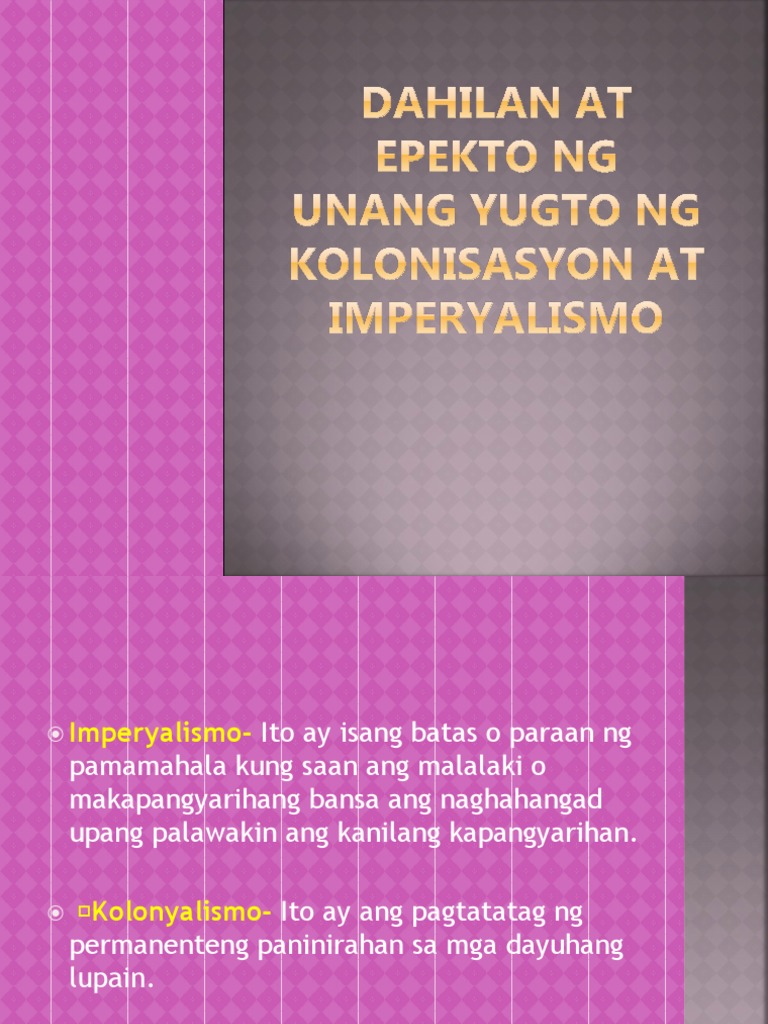 Dahilan At Epekto Ng Unang Yugto Ng Kolonisasyon Pdf